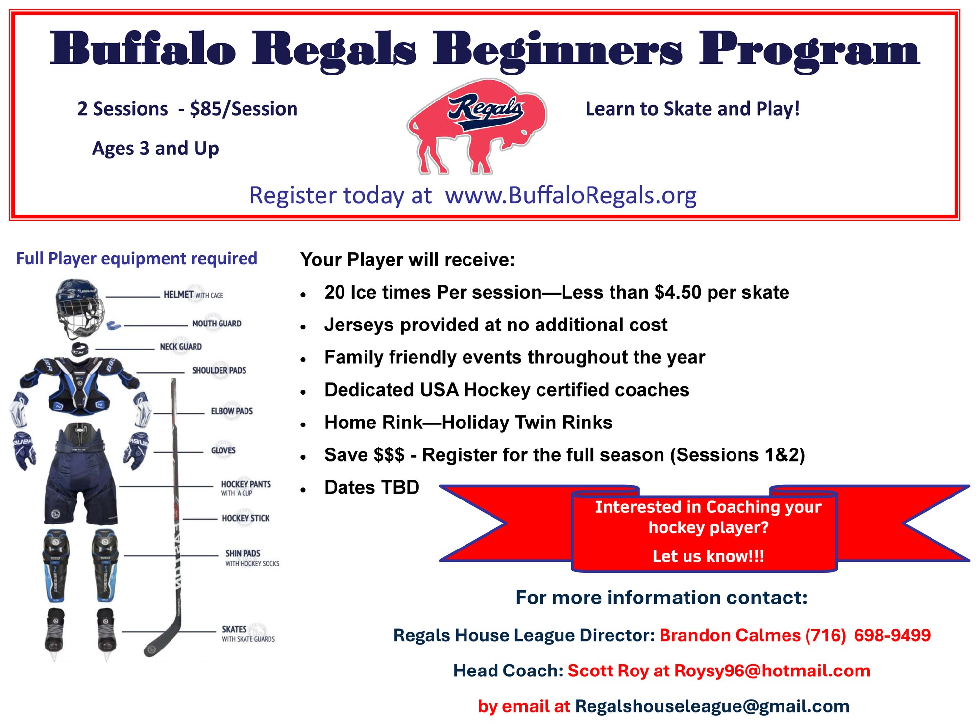 Regals House League Director: Brandon Calmes (716) 698-9499 Head Coach: Scott Roy at Roysy96@hotmail.com